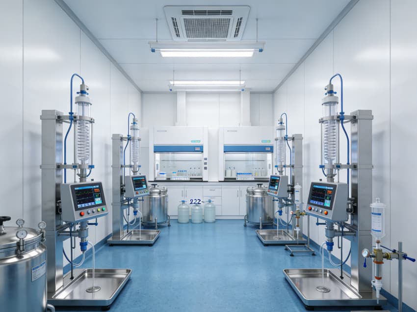 CGT醫藥研發生產車間內部采用藍色地面與白色墻壁的簡約統一風格,嚴格契合GMP最高等級潔凈規范,精準匹配細胞治療、基因工程等研發生產的無菌嚴苛需求。藍色地面選用醫用級高活性抗菌環氧自流平材質,經基層拋丸強化、抗菌底漆涂刷、環氧砂漿找平、抗菌罩面固化四道核心工序,表面平整無縫隙,具備強效殺菌特性,可耐受高頻次過氧化氫熏蒸、酒精擦拭等清潔消毒作業,杜絕微生物滋生與交叉污染。