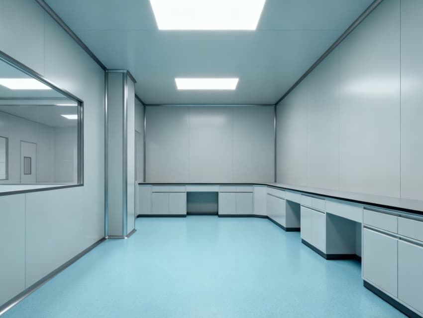 內(nèi)部按研發(fā)流程劃分六大功能區(qū):核心實驗區(qū)(淺藍防腐蝕地面、淺灰抗菌墻面)預(yù)留8米柱距,滿足液相色譜儀、細胞培養(yǎng)箱等設(shè)備布局;樣品處理區(qū)設(shè)雙層通風(fēng)櫥,避免試劑交叉污染;試劑儲存區(qū)配防爆柜體,適配危化品管控;無菌操作預(yù)留區(qū)保留萬級潔凈基礎(chǔ),可快速升級凈化等級;數(shù)據(jù)分析區(qū)銜接實驗區(qū),預(yù)留辦公與數(shù)據(jù)終端位置;人員緩沖區(qū)設(shè)更衣、消毒通道,防止外部污染帶入。整體空曠布局兼顧靈活研發(fā)與合規(guī)要求,為安徽藥企提供從基礎(chǔ)研究到中試的一體化空間。
